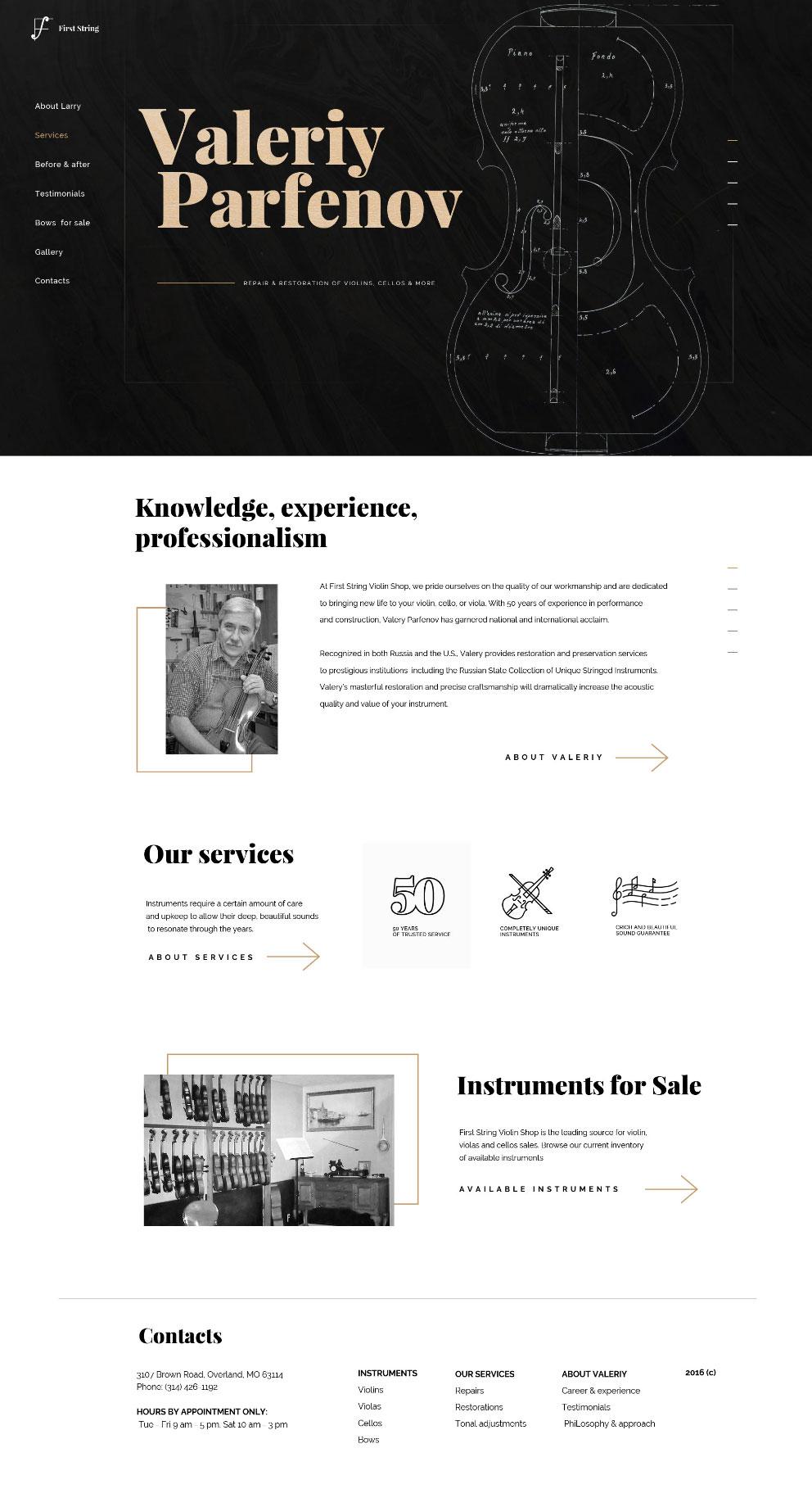 Valeriy is well-known among musicians violin master and restorer. Our goal was to connect classic design style with modern website development technologies to achieve both usability and inspiring appearance of the website. We were very happy to touch the charming world of classical music, beautiful music instruments and nice enthusiastic people who belong to this incredible world.